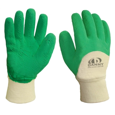 Luva de segurança, anti-vibração, tricotada de algodão com banho de cloro neoprene na palma e face palmar dos dedos, punho com elástico e acabamento em overlock.